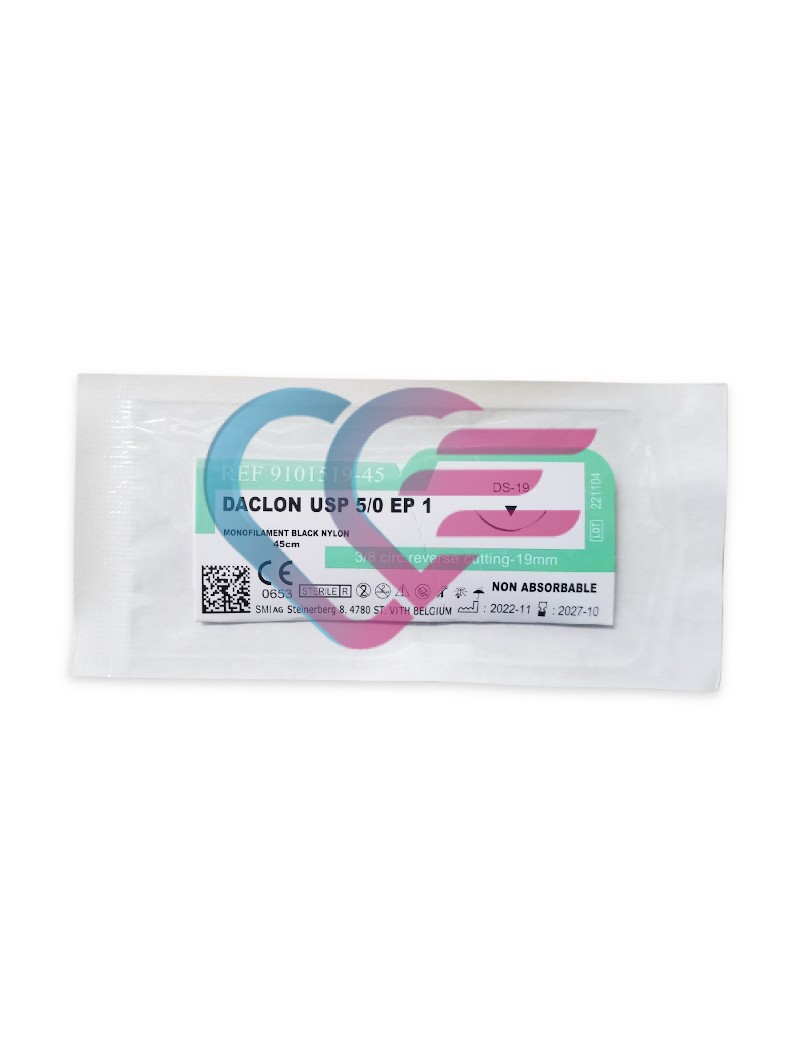 KONAC KIRURŠKI DACLON NYLON MONOFIL 75cm EP 1 USP 5/0 IGLA 3/8 CIR CUT. 19mm/45cm